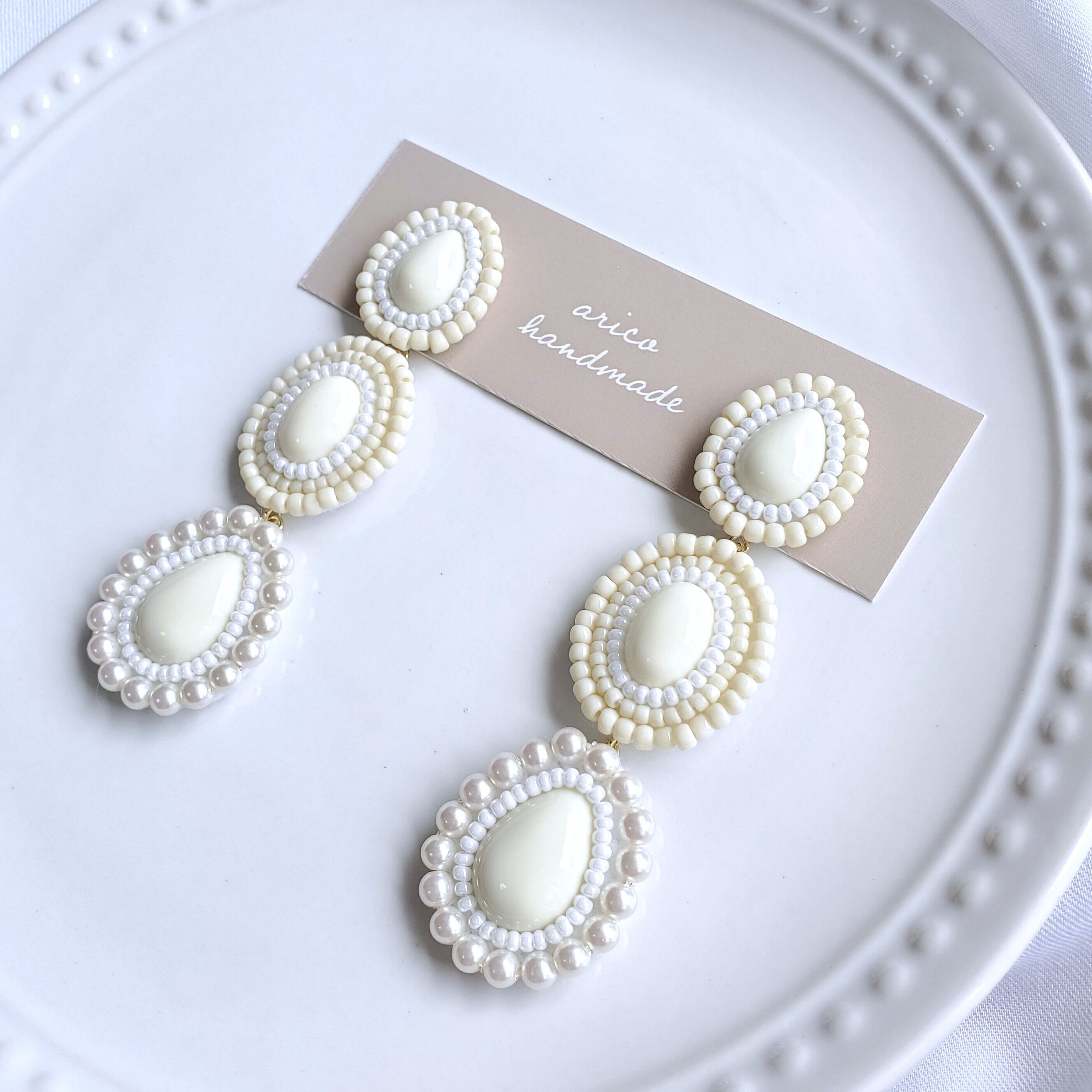 ナチュラルなアイボリーカラーでまとめたロングピアス/イヤリングです♪