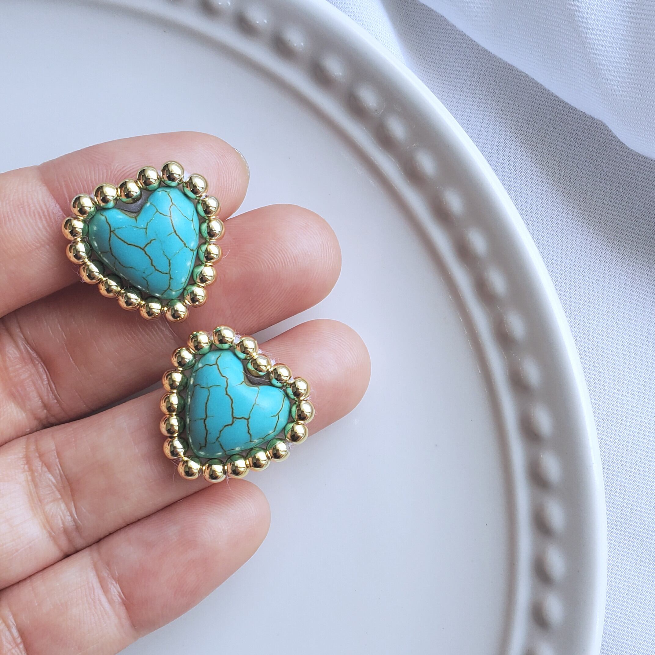 【再販×2】ターコイズ×ゴールドビーズピアス/イヤリング【大ぶりピアス】【刺繍ピアス】 【ナチュラルイヤリング】【大ぶりピアス】【ビーズピアス】