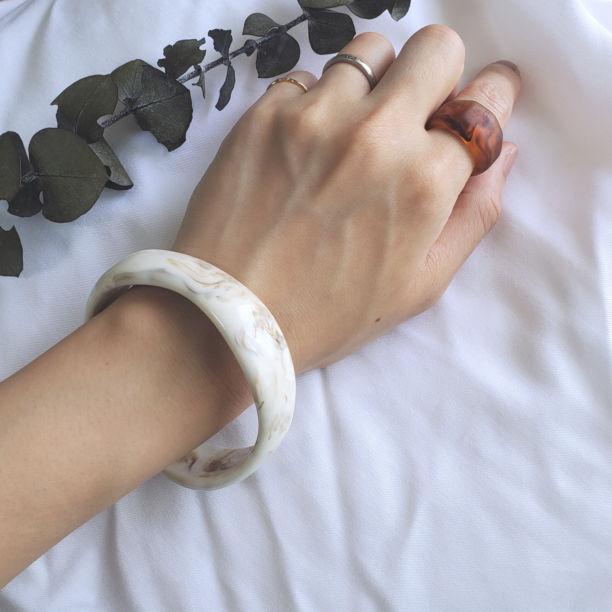 ベージュにブラウンのマーブル模様が可愛い夏にピッタリなバングルです♪