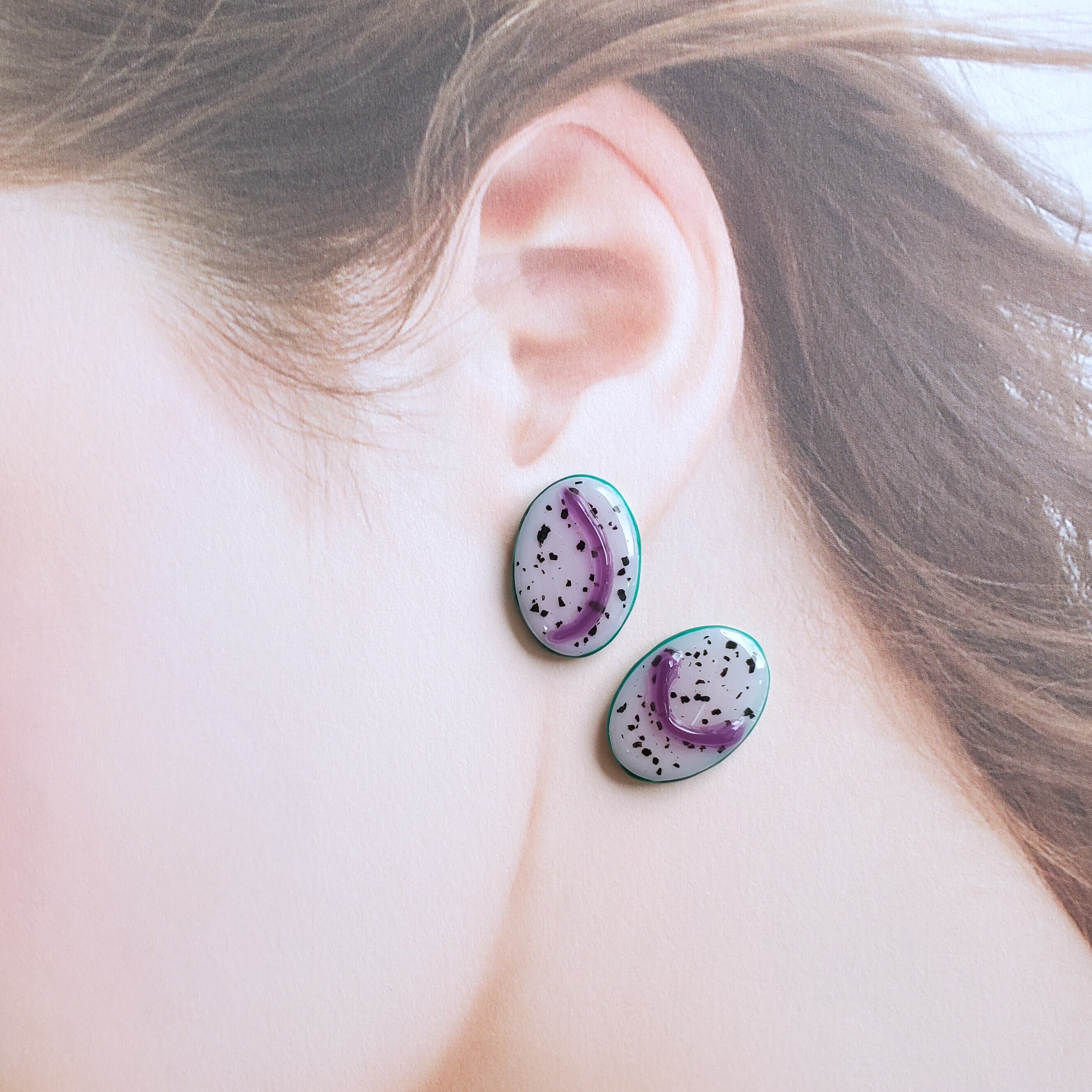 マイカと粘土ジェルを使用したレジンピアス/イヤリングです♡