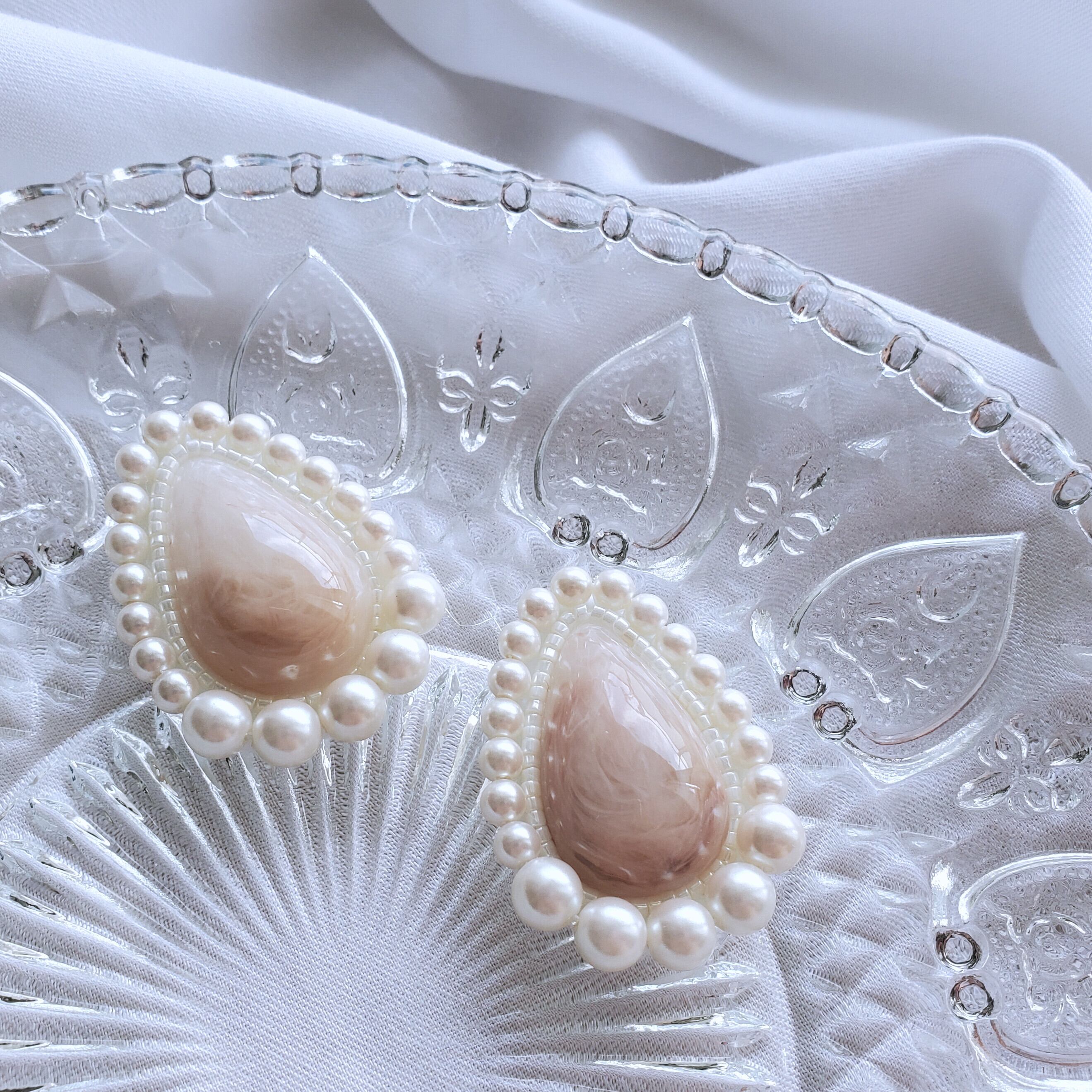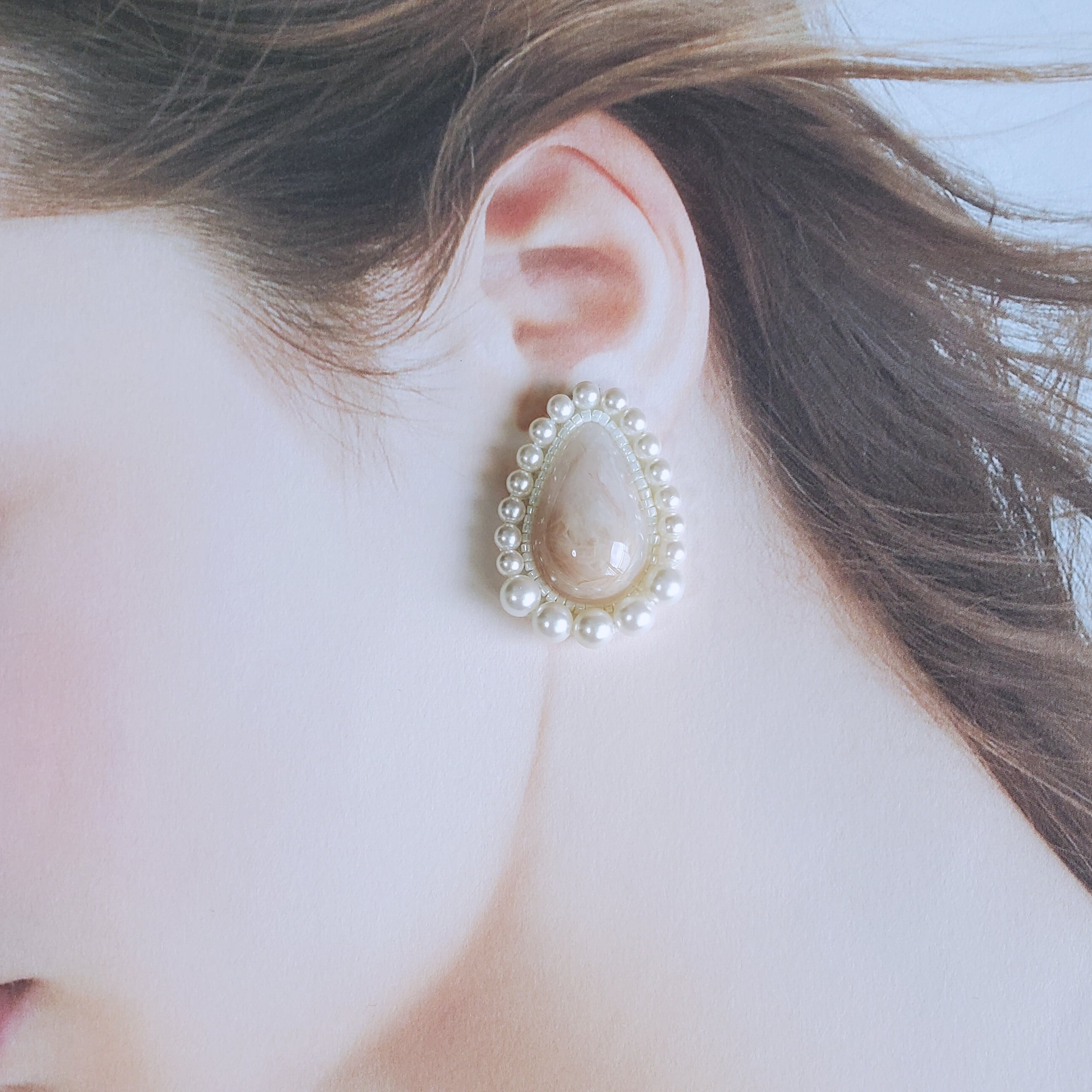 手作りのマーブルパーツにパールビーズを合わせた上品なピアス/イヤリングです♪