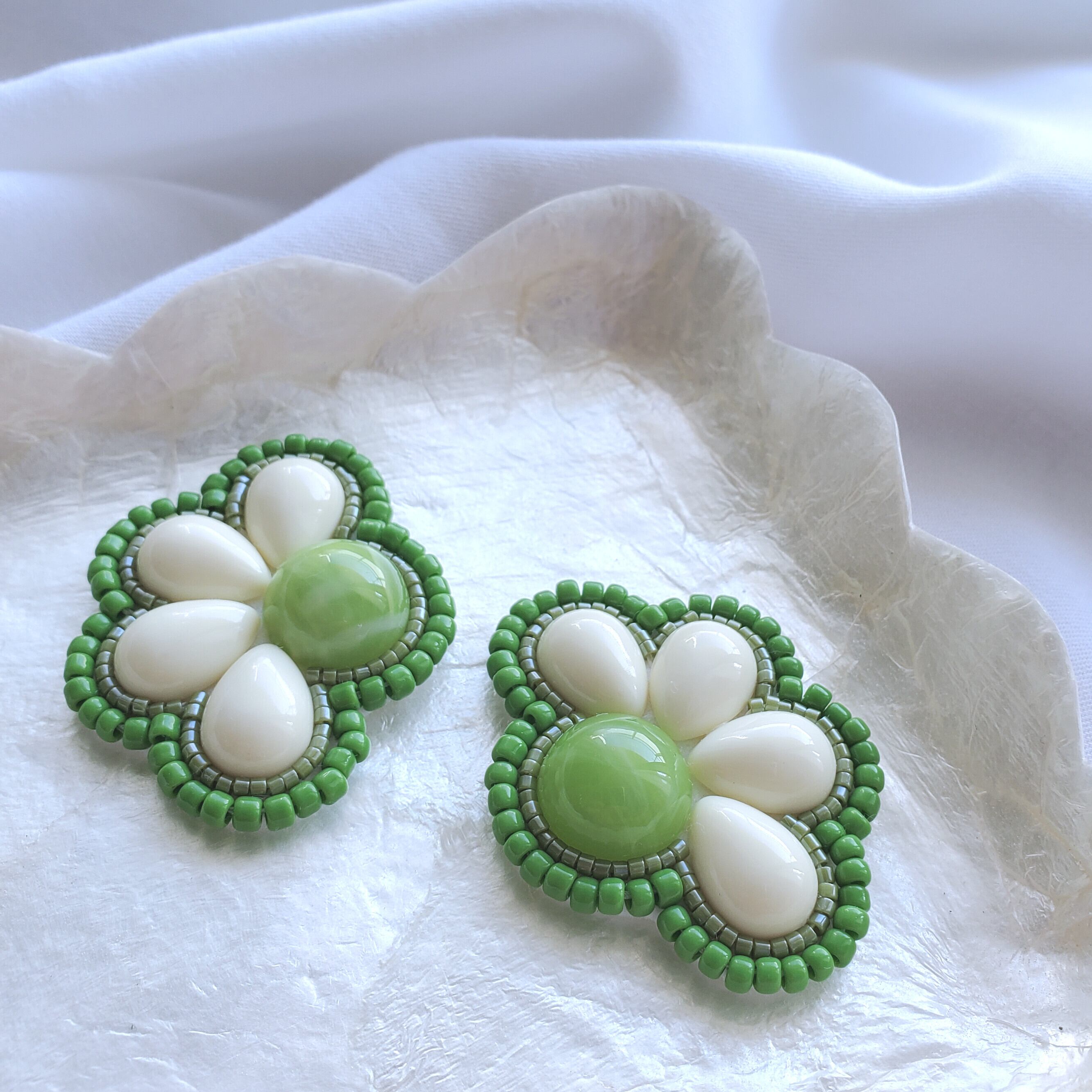 グリーン×グリーンの組み合わせが可愛くてオシャレなピアス/イヤリングです♡
