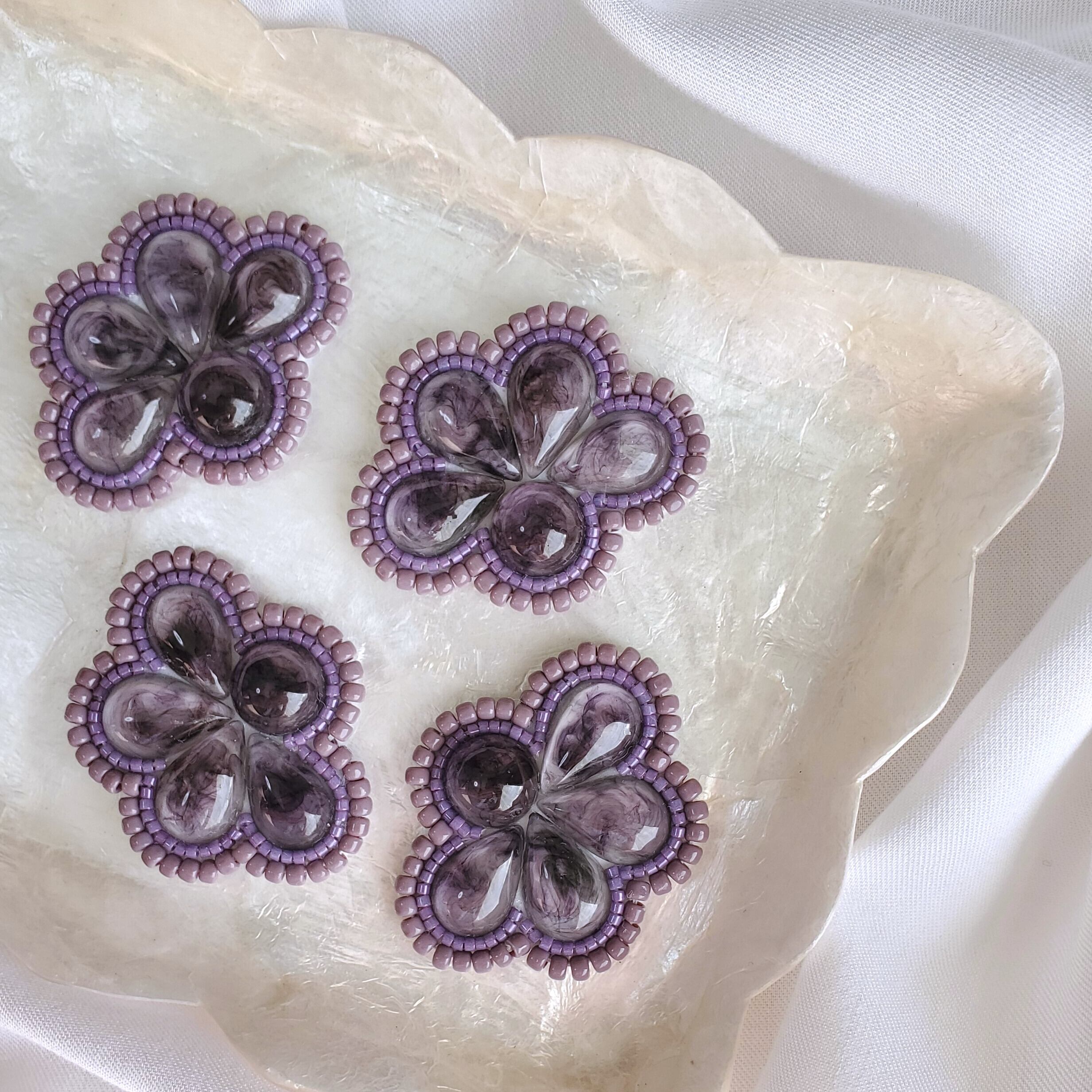 パーツから手作りしたワンカラーのピアス/イヤリングです♡
