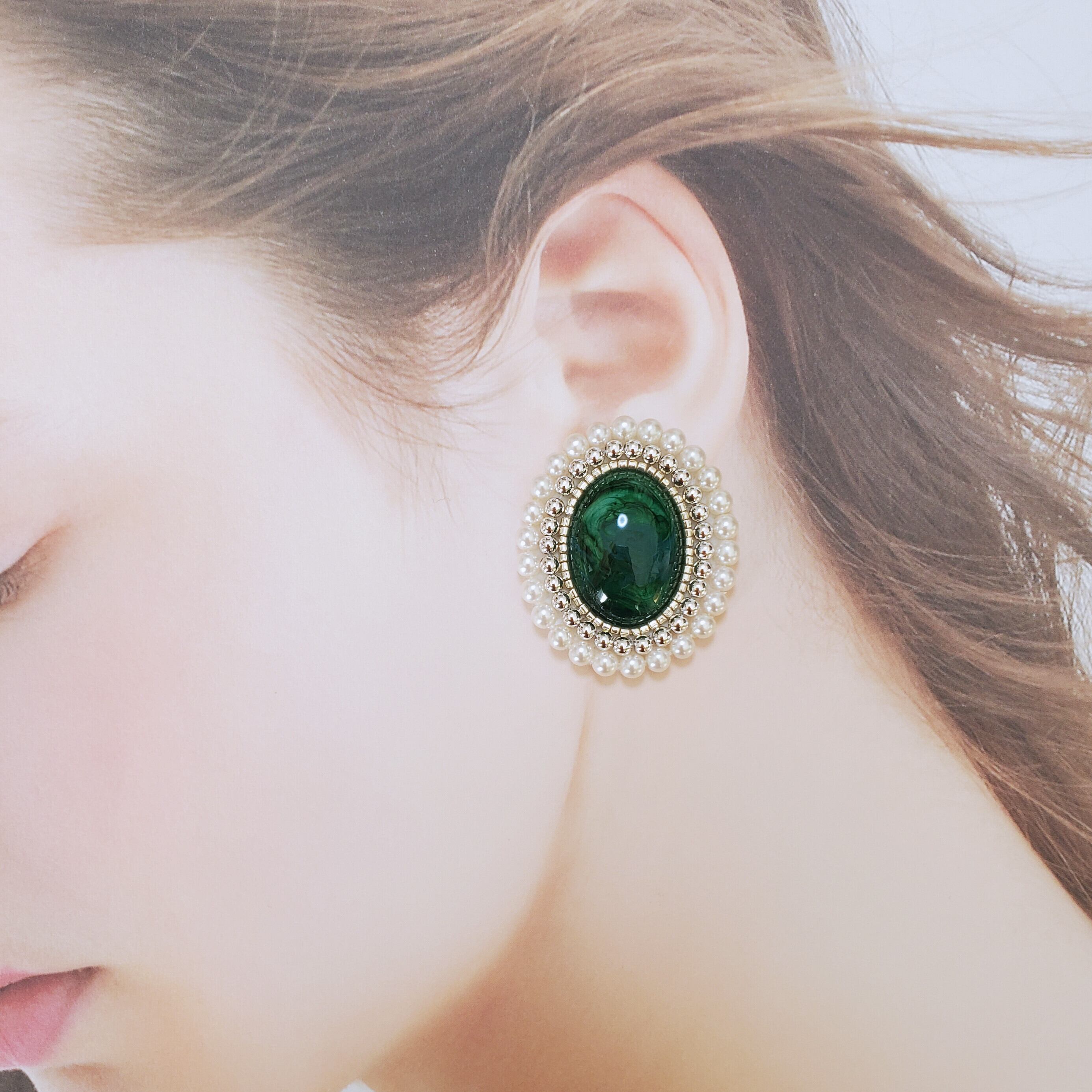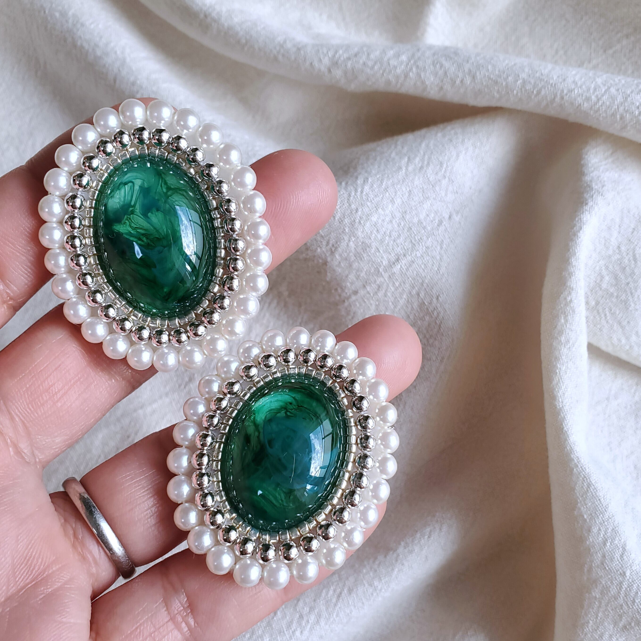 【再販】green marble × pearl pierce/earring 【刺繍ピアス】【刺繍イヤリング】【ビーズ】【ビーズ刺繍】