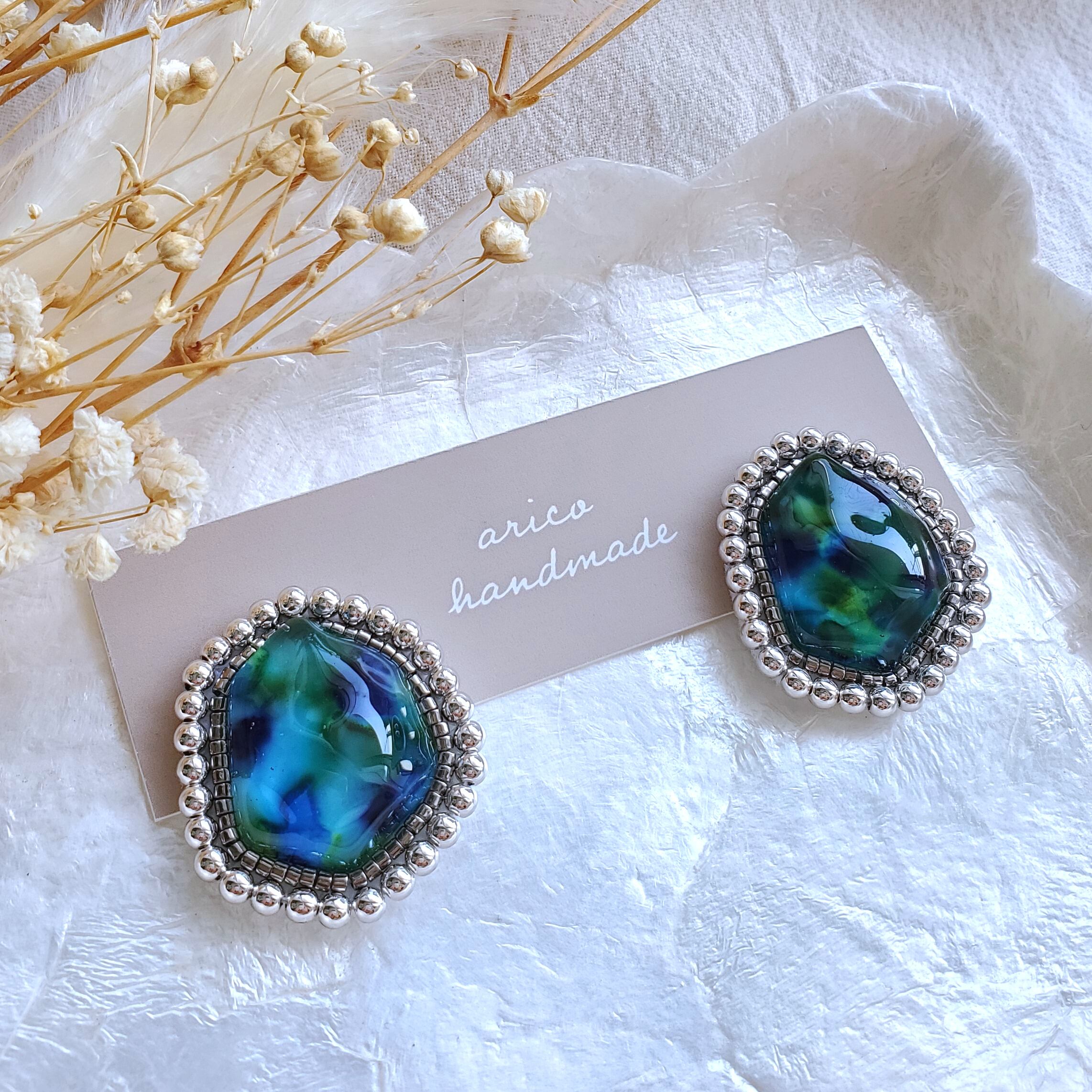 マーブルリキッドとレジンで作ったピアス/イヤリングです♪