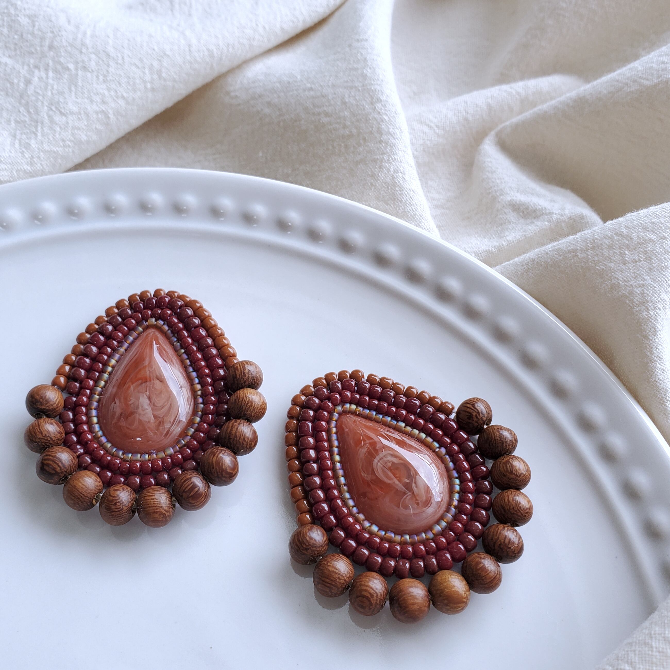 ブラウン系でまとめたエスニックなピアス/イヤリングです♪