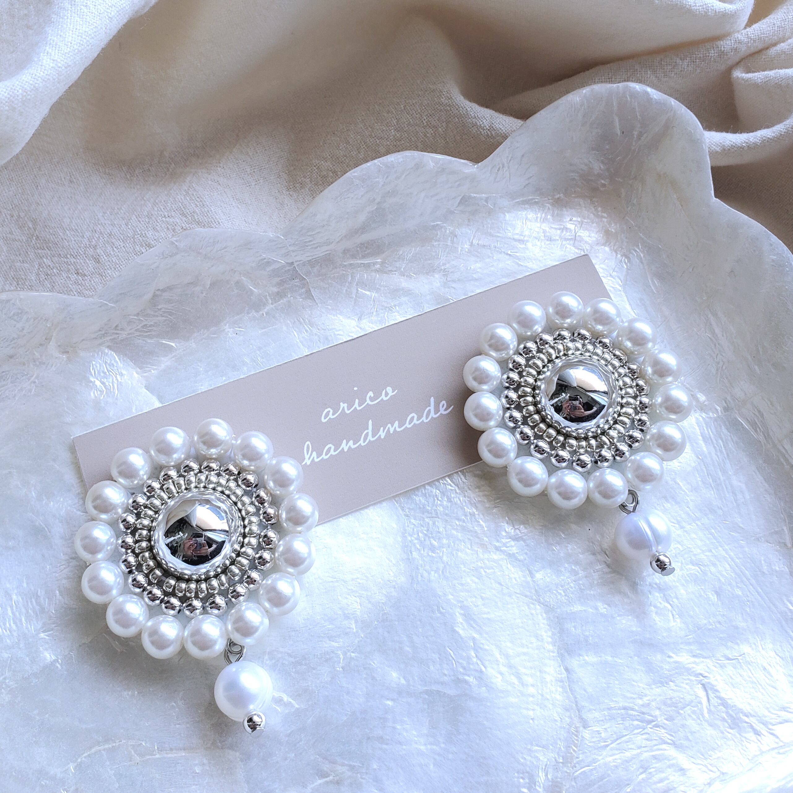 シルバーとパールの組み合わせの上品なピアス/イヤリングです♪